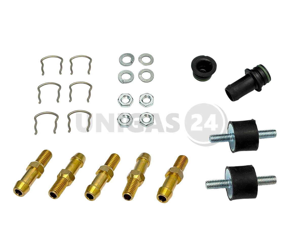 Zestaw akcesoriów składa się z akcesoriów niezbędnych do 4-cylindrowych szyn wtryskowych z technopolimeru o średnicy 14 mm z wymiennymi polimerowymi dyszami.