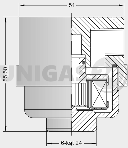 Lewa nakrętka z gwintem W21,8L / końcówka śrubowa z gwintem W21,8L.