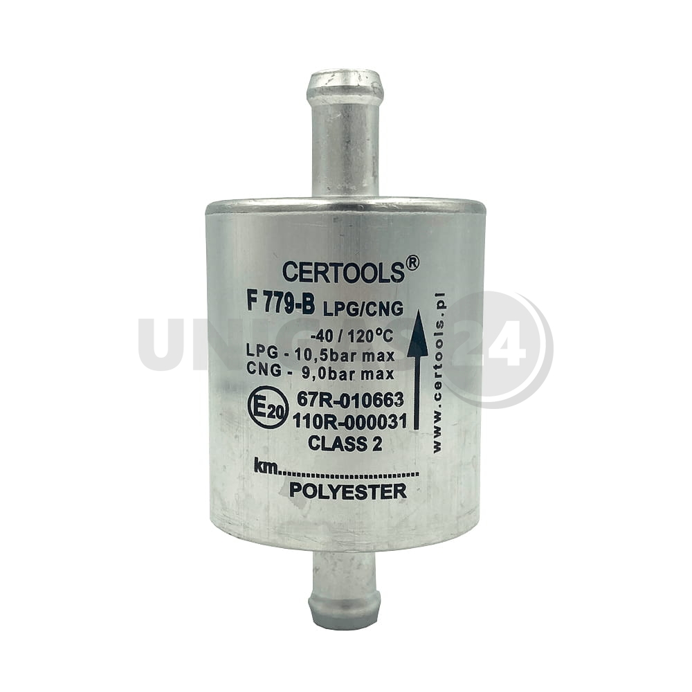 Zespół filtra fazy lotnej LPG i CNG, wielokrotnego użytku, z przedłużonym wkładem filtrującym, zaciskany z jednej strony. Wewnątrz umieszczony jest wkład papierowy, poliestrowy bez siatki, poliestrowy z siatką lub z włókna szklanego, do wyboru: CF-109; CF-109-1; CF-109-2, najczęściej stosowany w filtrach Certools F-779-B,C oraz F-781. Całość uszczelniona jest o-ringami.