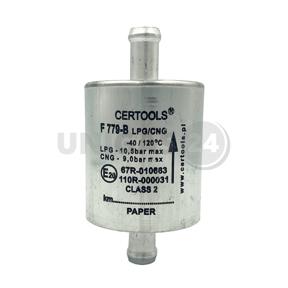 Zespół filtra fazy lotnej LPG i CNG, wielokrotnego użytku, z przedłużonym wkładem filtrującym, zaciskany z jednej strony. Wewnątrz umieszczony jest wkład papierowy, poliestrowy bez siatki, poliestrowy z siatką lub z włókna szklanego, do wyboru: CF-109; CF-109-1; CF-109-2, najczęściej stosowany w filtrach Certools F-779-B,C oraz F-781. Całość uszczelniona jest o-ringami.