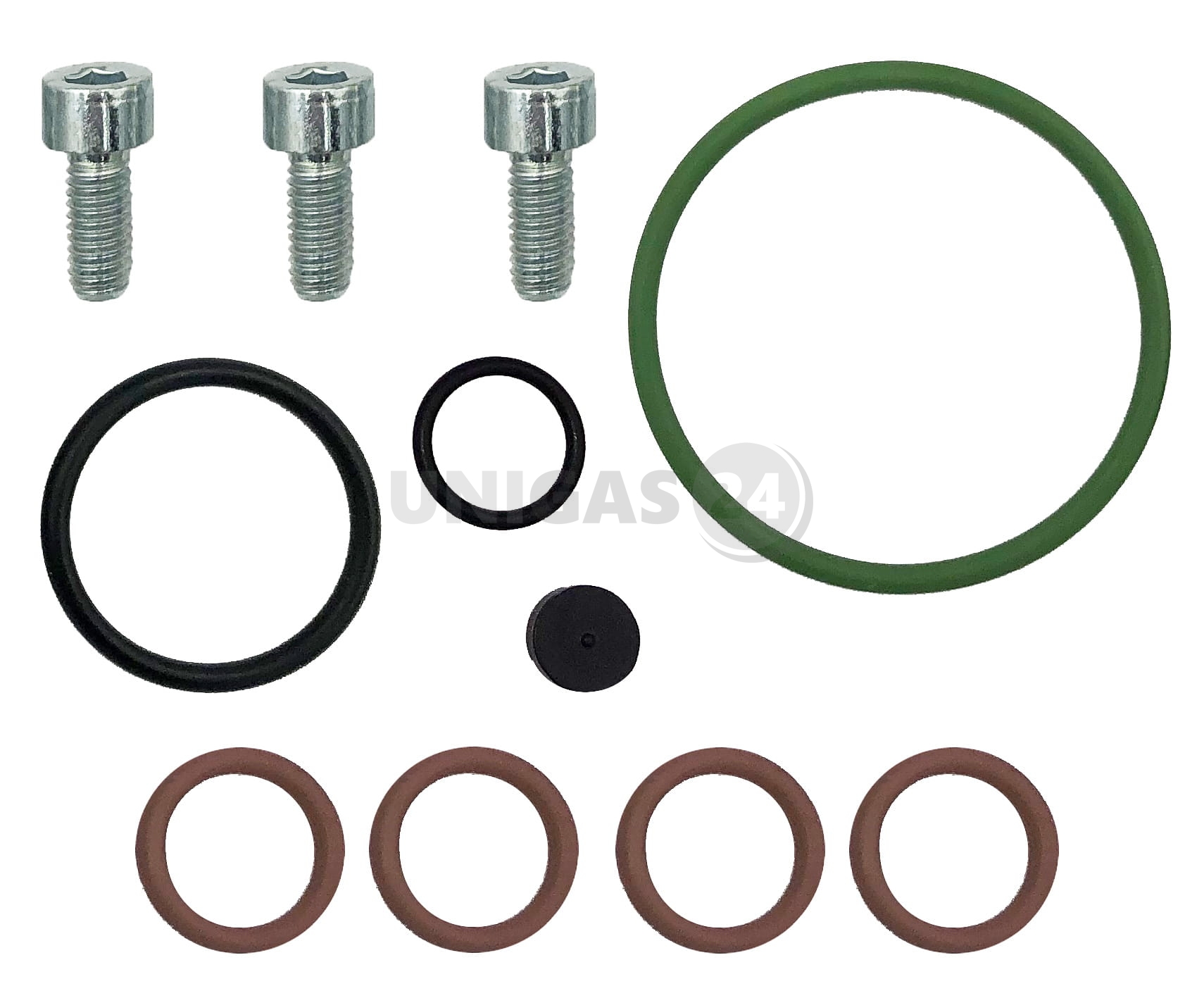 W komplecie znajdują się elementy przewidziane przez producenta do wymiany podczas regeneracji reduktora Tomasetto z wbudowanym filtrem fazy ciekłej.
