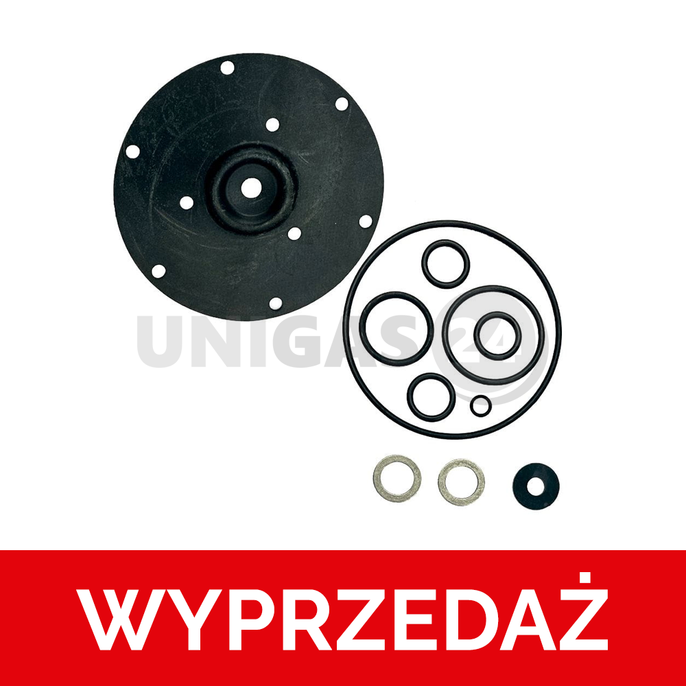 Komplet naprawczy to zestaw najszybciej zużywających się części reduktora: gumowych membran, uszczelek i podkładek, dopasowanych kształtem i rozmiarem do konkretnego modelu reduktora. Wymiana tych akcesoriów jest najprostszą (i najtańszą) metodą polepszenia funkcjonowania reduktora w przypadku wystąpienia takich objawów, jak: trudności z odpalaniem, gaśnięcie silnika, nierówna praca, duże spalanie paliwa.