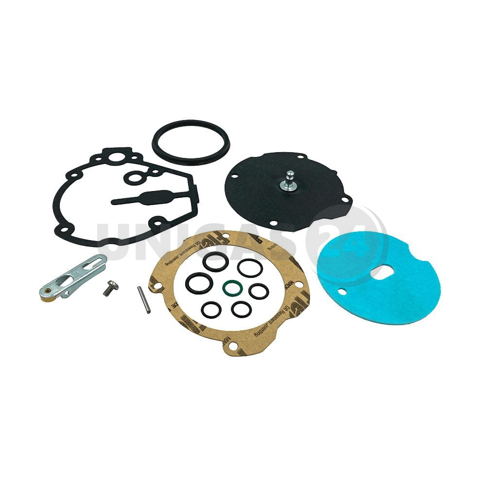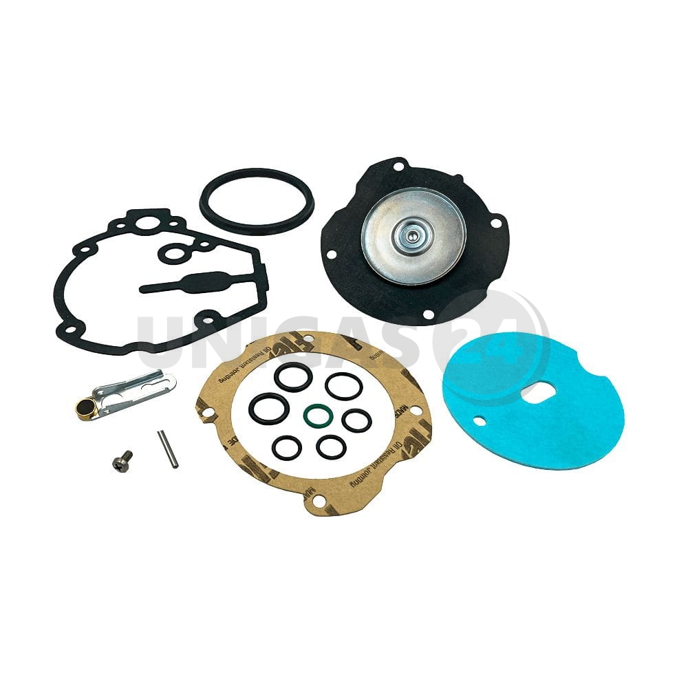Komplet naprawczy to zestaw najszybciej zużywających się części reduktora: gumowych membran, uszczelek i podkładek, dopasowanych kształtem i rozmiarem do konkretnego modelu reduktora. Wymiana tych akcesoriów jest najprostszą (i najtańszą) metodą polepszenia funkcjonowania reduktora w przypadku wystąpienia takich objawów, jak: trudności z odpalaniem, gaśnięcie silnika, nierówna praca, duże spalanie paliwa.