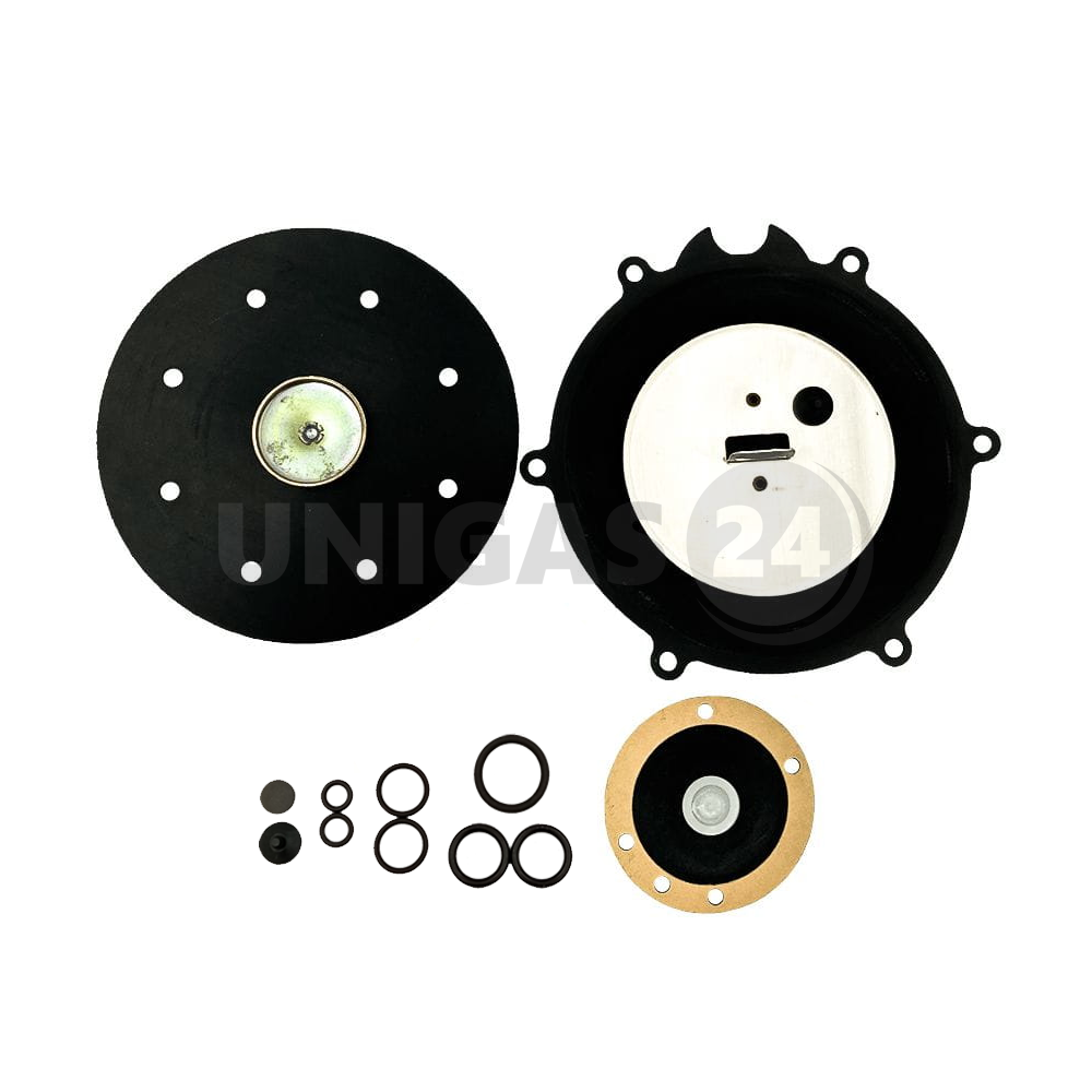 Komplet naprawczy to zestaw najszybciej zużywających się części reduktora: gumowych membran, uszczelek i podkładek, dopasowanych kształtem i rozmiarem do konkretnego modelu reduktora. Wymiana tych akcesoriów jest najprostszą (i najtańszą) metodą polepszenia funkcjonowania reduktora w przypadku wystąpienia takich objawów, jak: trudności z odpalaniem, gaśnięcie silnika, nierówna praca, duże spalanie paliwa.