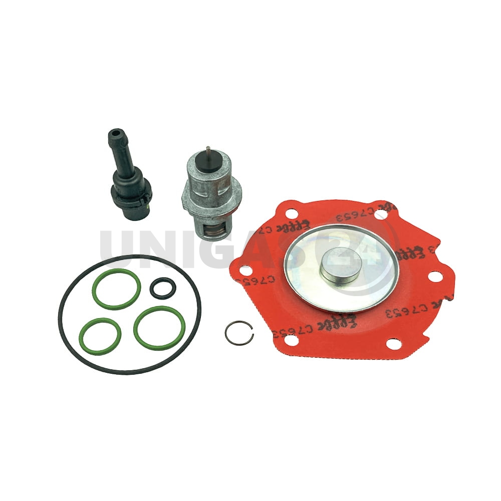 Komplet naprawczy to zestaw najszybciej zużywających się części reduktora: gumowych membran, uszczelek i podkładek, dopasowanych kształtem i rozmiarem do konkretnego modelu reduktora. Wymiana tych akcesoriów jest najprostszą (i najtańszą) metodą polepszenia funkcjonowania reduktora w przypadku wystąpienia takich objawów, jak: trudności z odpalaniem, gaśnięcie silnika, nierówna praca, duże spalanie paliwa. Zalecana wymiana przy przebiegu 90 000 km.