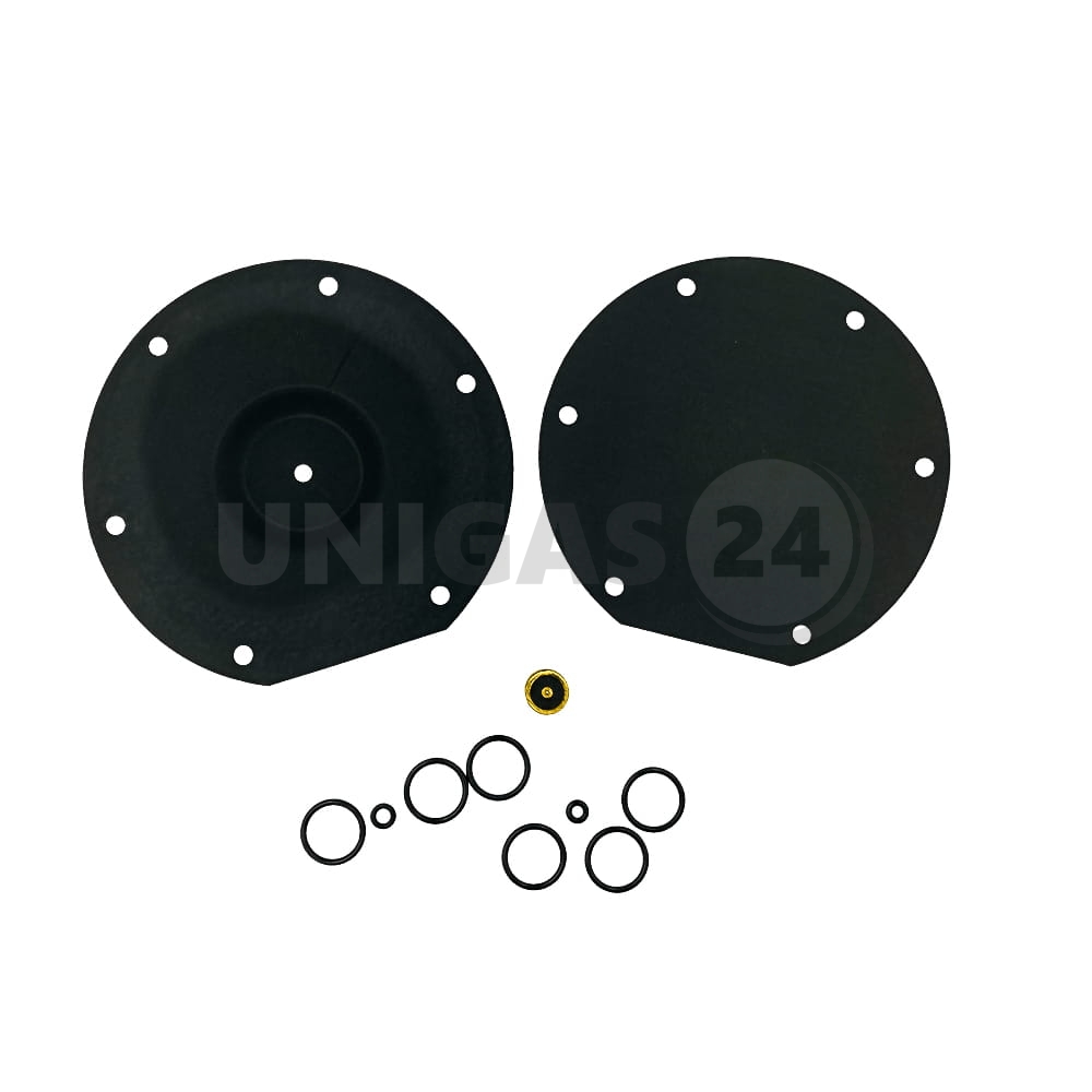 Komplet naprawczy to zestaw najszybciej zużywających się części reduktora: gumowych membran, uszczelek i podkładek, dopasowanych kształtem i rozmiarem do konkretnego modelu reduktora. Wymiana tych akcesoriów jest najprostszą (i najtańszą) metodą polepszenia funkcjonowania reduktora w przypadku wystąpienia takich objawów, jak: trudności z odpalaniem, gaśnięcie silnika, nierówna praca, duże spalanie paliwa.
