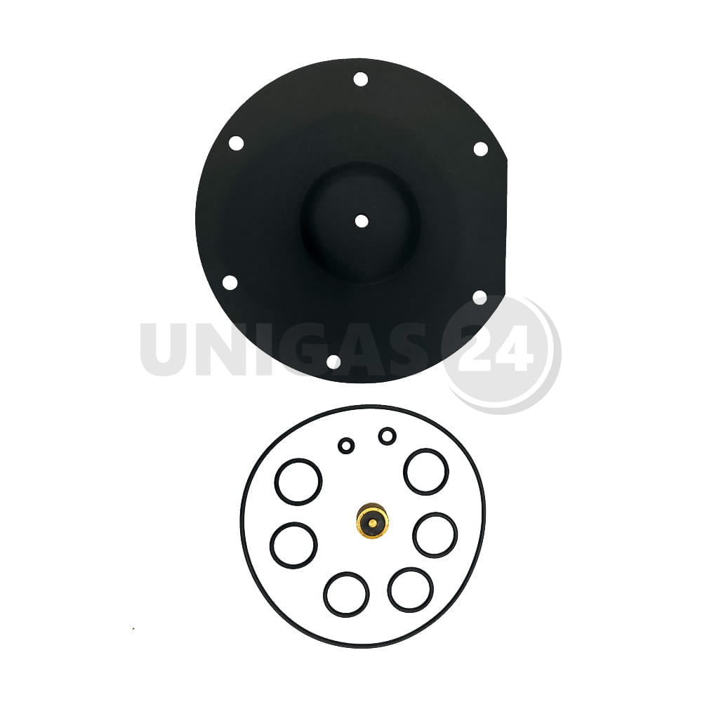 Komplet naprawczy to zestaw najszybciej zużywających się części reduktora: gumowych membran, uszczelek i podkładek, dopasowanych kształtem i rozmiarem do konkretnego modelu reduktora. Wymiana tych akcesoriów jest najprostszą (i najtańszą) metodą polepszenia funkcjonowania reduktora w przypadku wystąpienia takich objawów, jak: trudności z odpalaniem, gaśnięcie silnika, nierówna praca, duże spalanie paliwa.