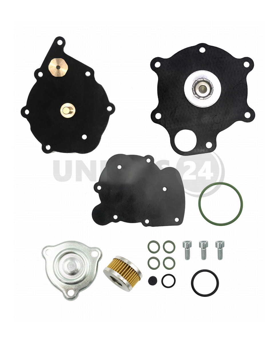 W komplecie znajdują się elementy przewidziane przez producenta do wymiany podczas regeneracji reduktora Tomasetto z wbudowanym filtrem fazy ciekłej.