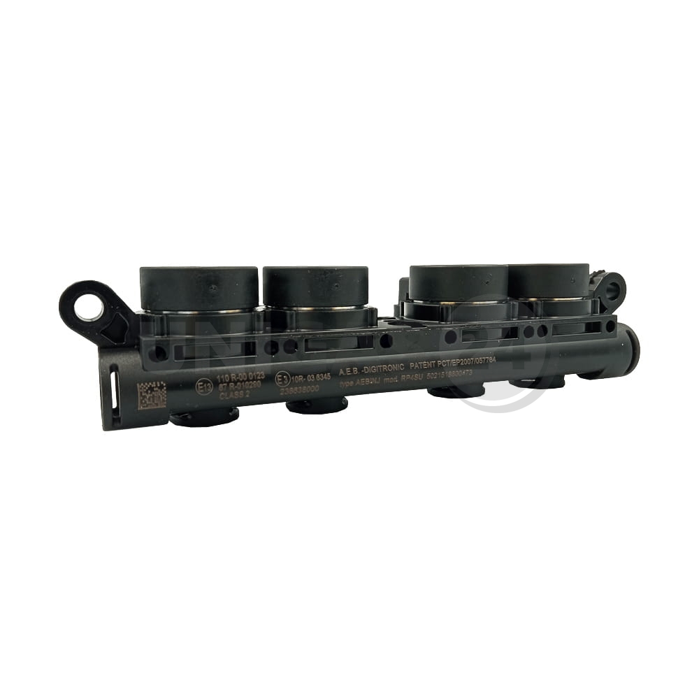 Ta szyna składa się z 4 wtryskiwaczy osadzonych na korpusie z technopolimeru, które są dopasowane do wymiennych dysz polimerowych.