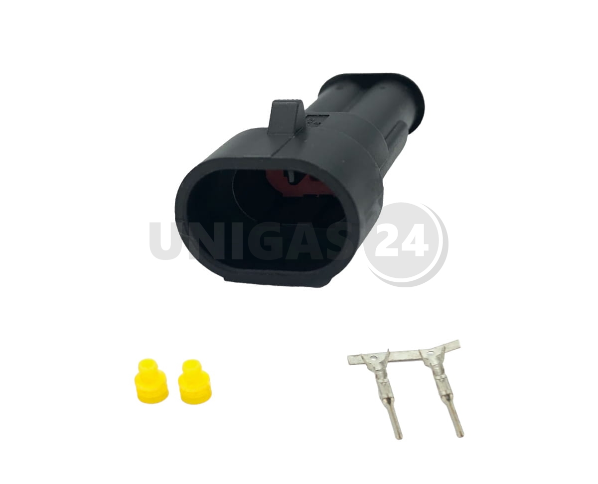 Wtyk męski typu SuperSeal stosowany w instalacji elektrycznej.