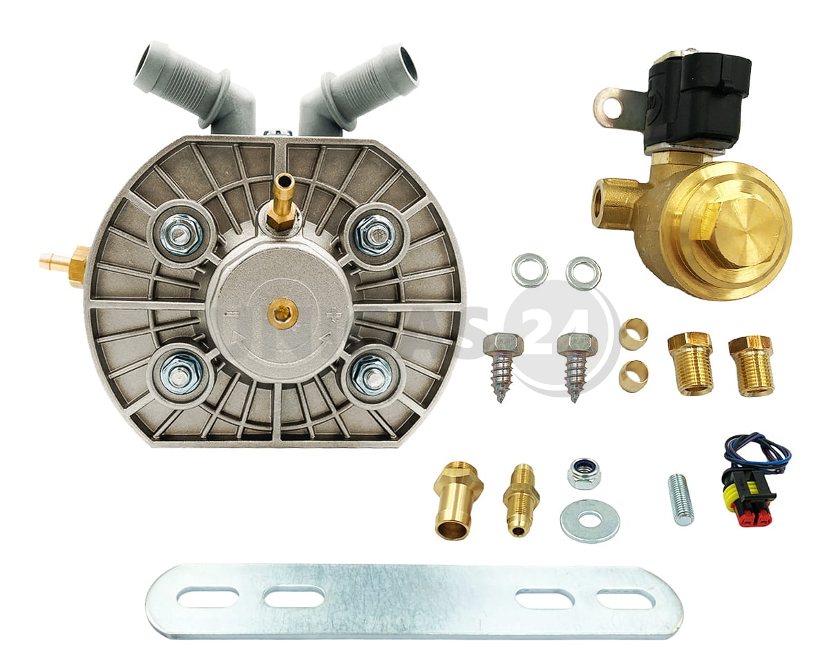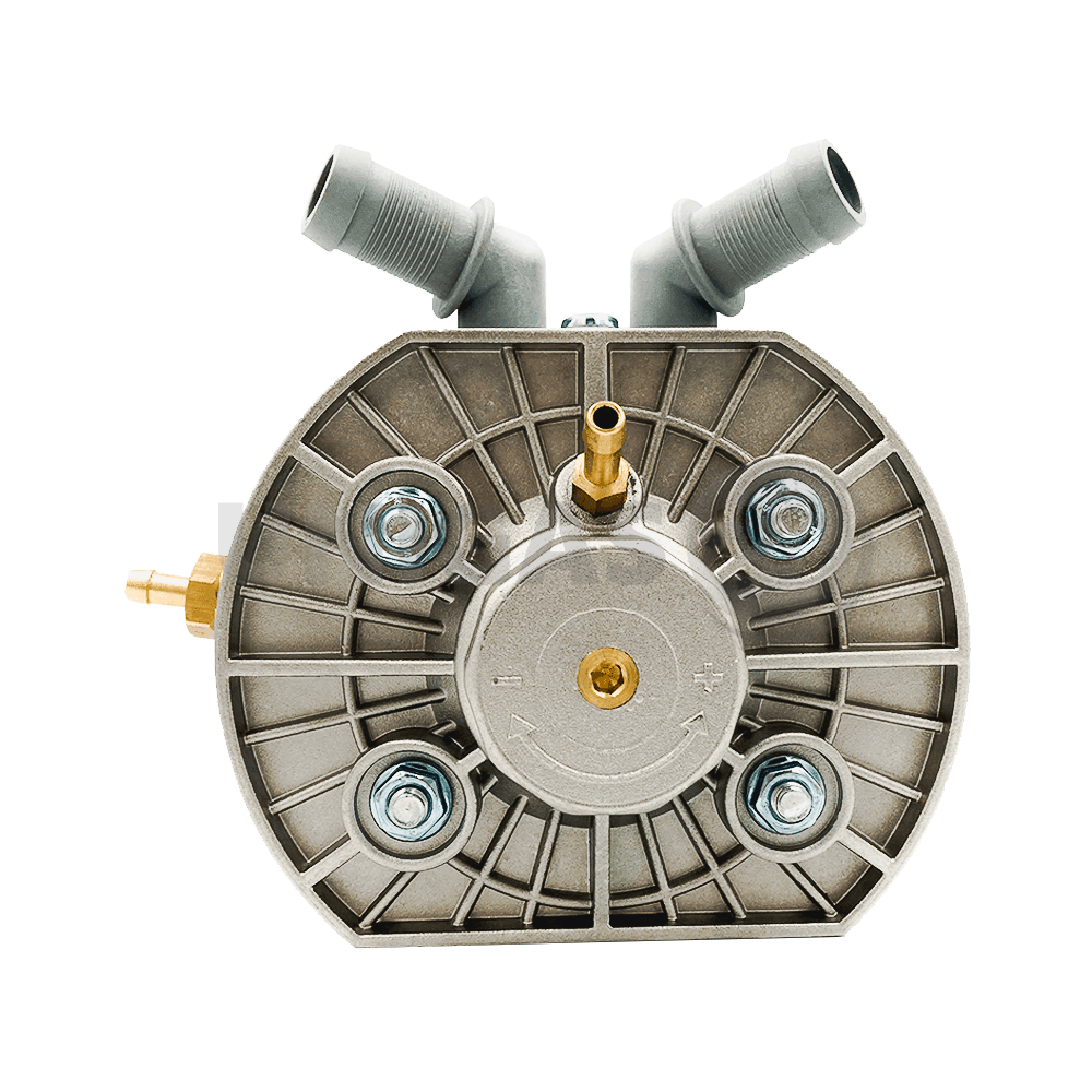 Reduktor do systemów sekwencyjnego wtrysku gazu do silników o mocy do 150kW (204KM) z zewnętrznym elektrozaworem i filtrem. Zasilany rurką miedzianą Cu o średnicy fi6. Klapkowy zawór regulacyjny.