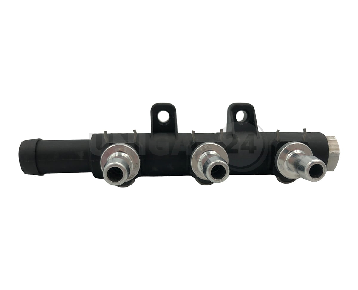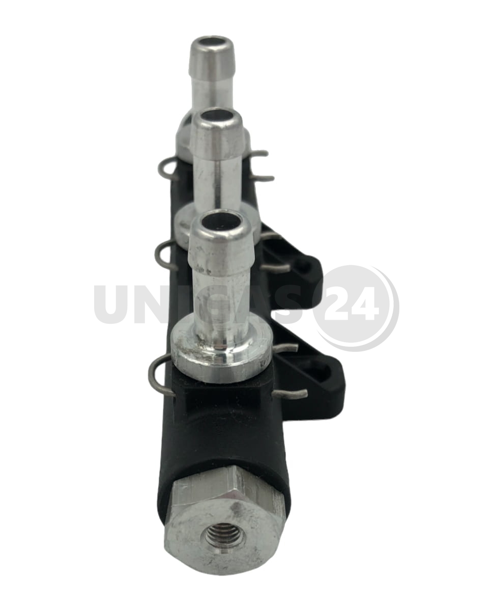 Rozdzielacz z doprowadzający gaz do pojedynczych wtryskiwaczy. Wykonany z tworzywa sztucznego z aluminiowymi króćcami.