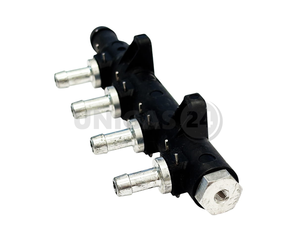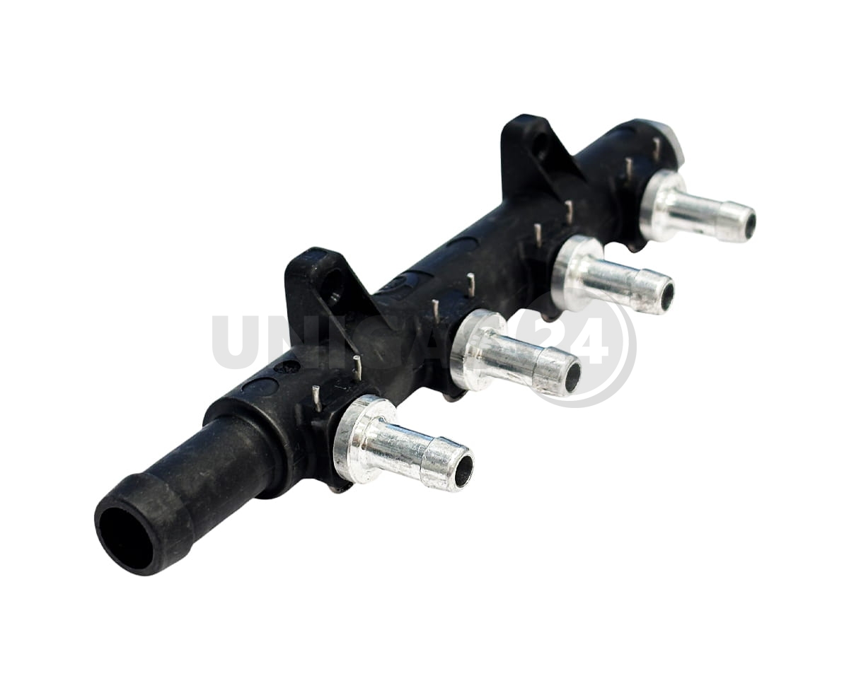Rozdzielacz z doprowadzający gaz do pojedynczych wtryskiwaczy. Wykonany z tworzywa sztucznego z aluminiowymi króćcami.