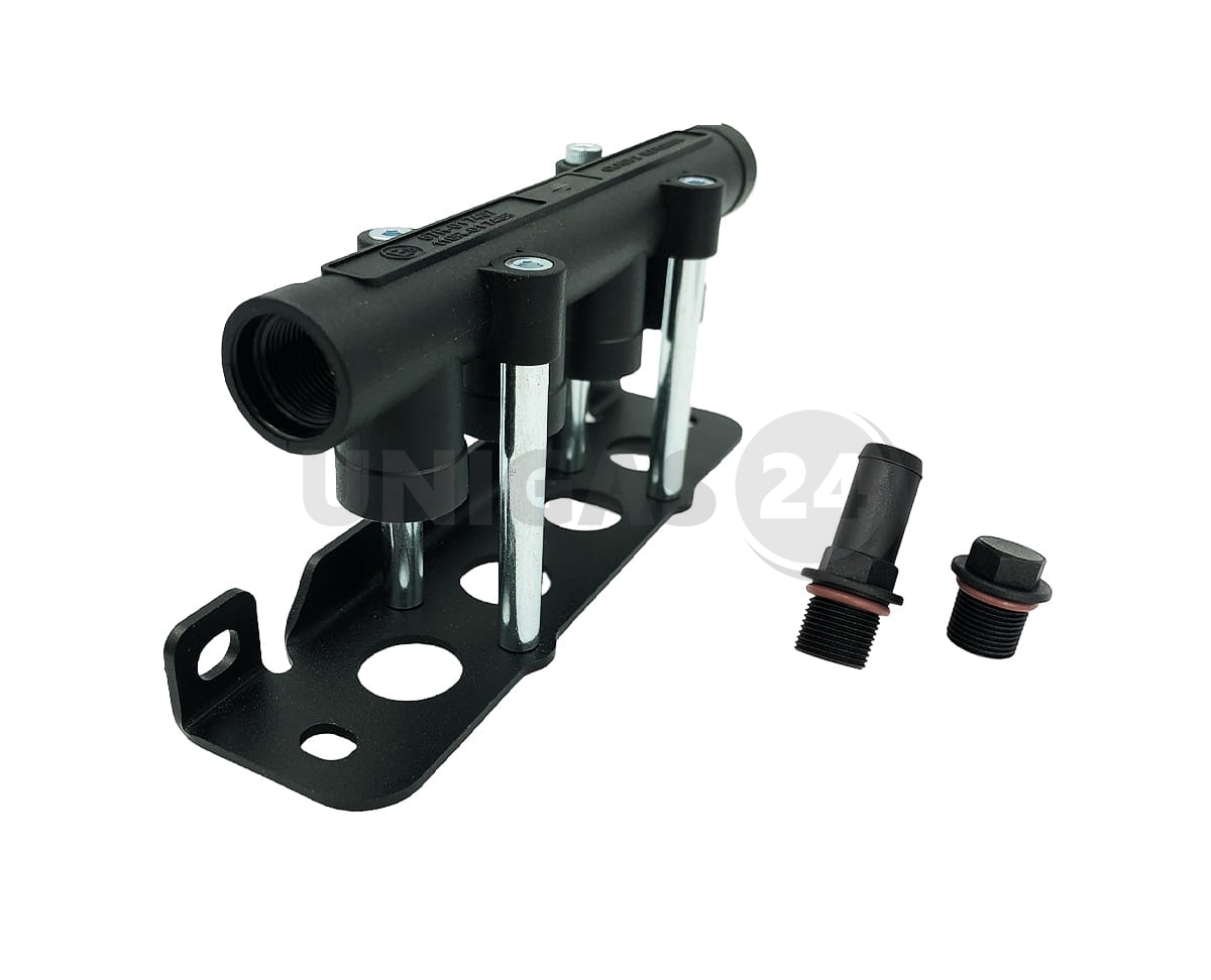 Element stosowany w instalacjach sekwencyjnego wtrysku gazu LPG IV generacji. Szyna pozwala na zamontowanie wtryskiwaczy Hana Engineering H2000. Króciec i zaślepka w zestawie.