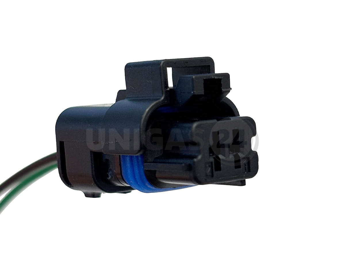 Wtyczka 2-pinowa z przewodami o długości ok. 16cm. Stosowana między innymi do cewki elektrozaworu w instalacjach LANDI RENZO MED/OMEGAS, wtryskiwacza MATRIX, cewki reduktora LI-10/IG1/dozatora IGS.